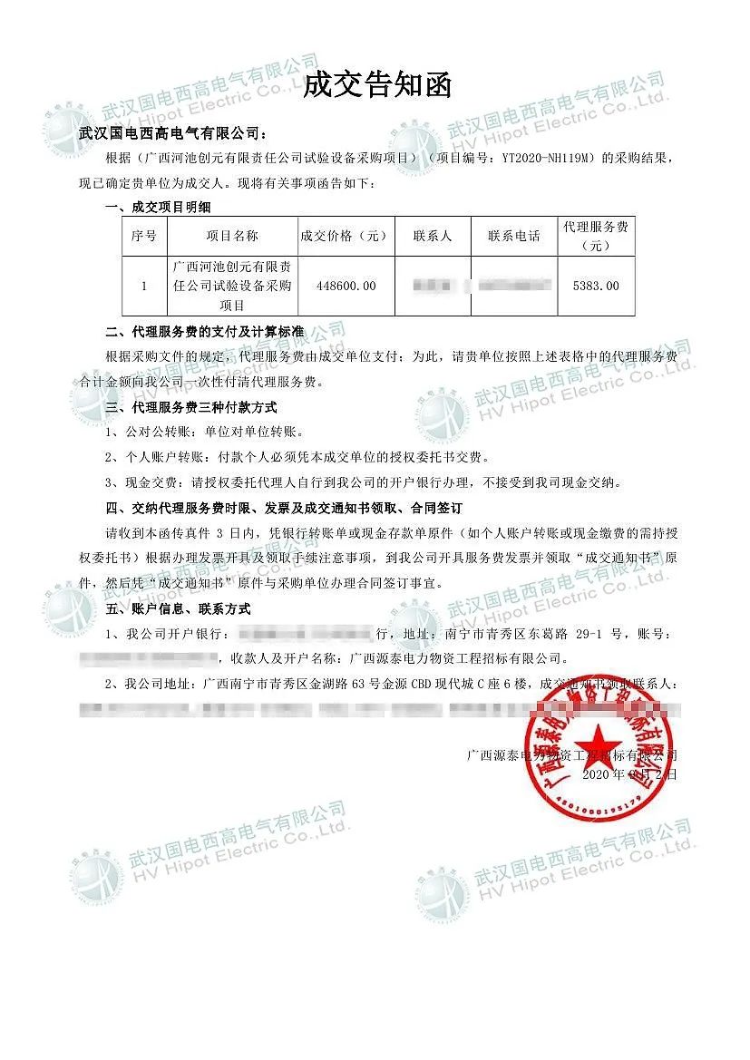 继成功交付国网新源仙居抽水蓄能电站、武汉中电输变电等油化试验室项目后,国电西高再次成功中标广西河池创元有限责任公司试验设备采购项目(油化试验室),招标编号:YT2020-NH119M,中标金额44.86万元。